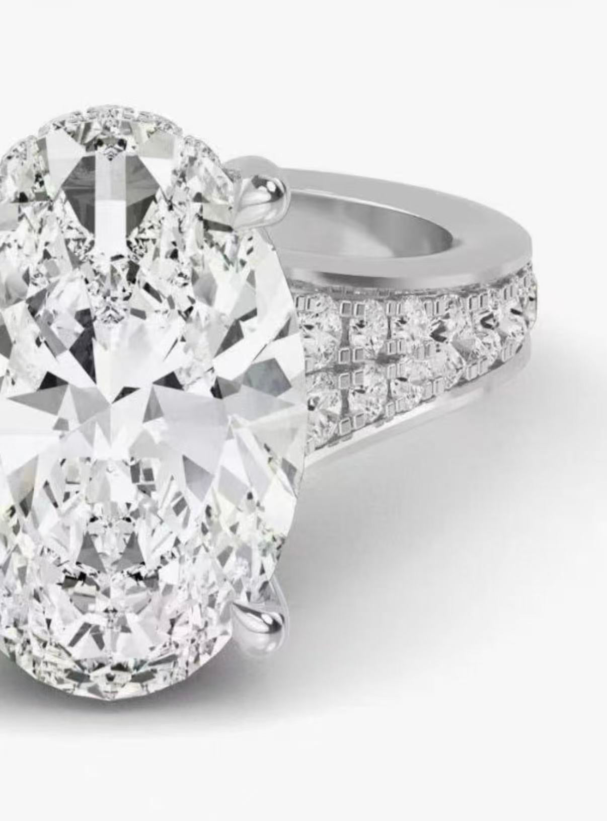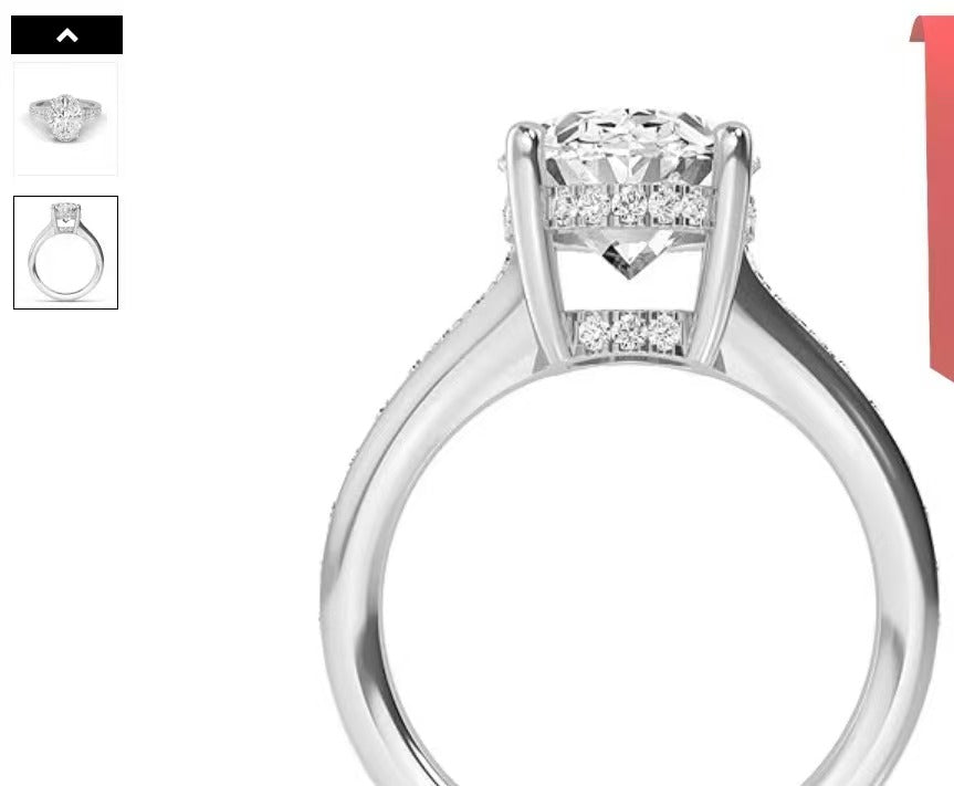 Oval cut 4-prong setting with side stone 14K |