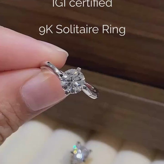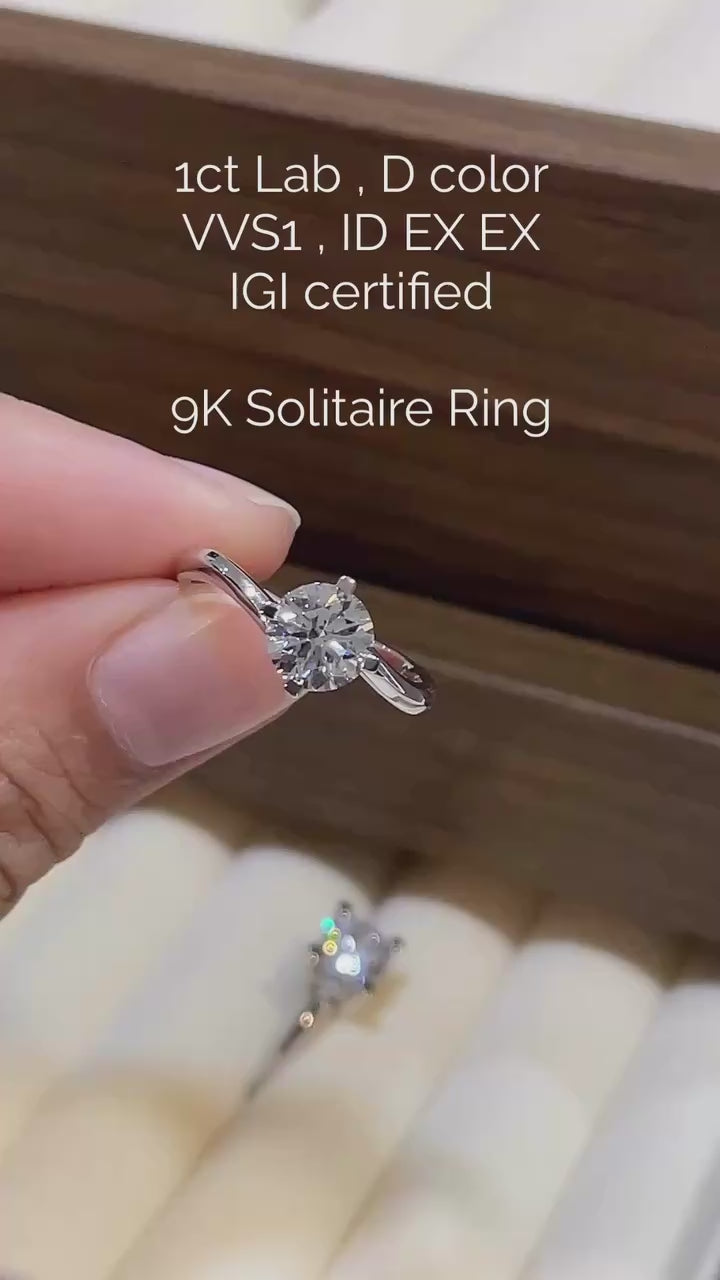 ASH044 ソリティア ラボグロウン ダイヤモンド リング 9K、D、VVS1、VVS2、3EX、IGI鑑定書付き