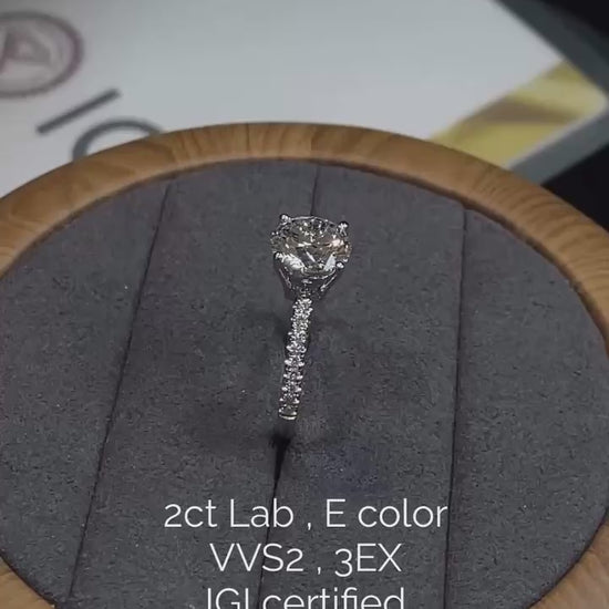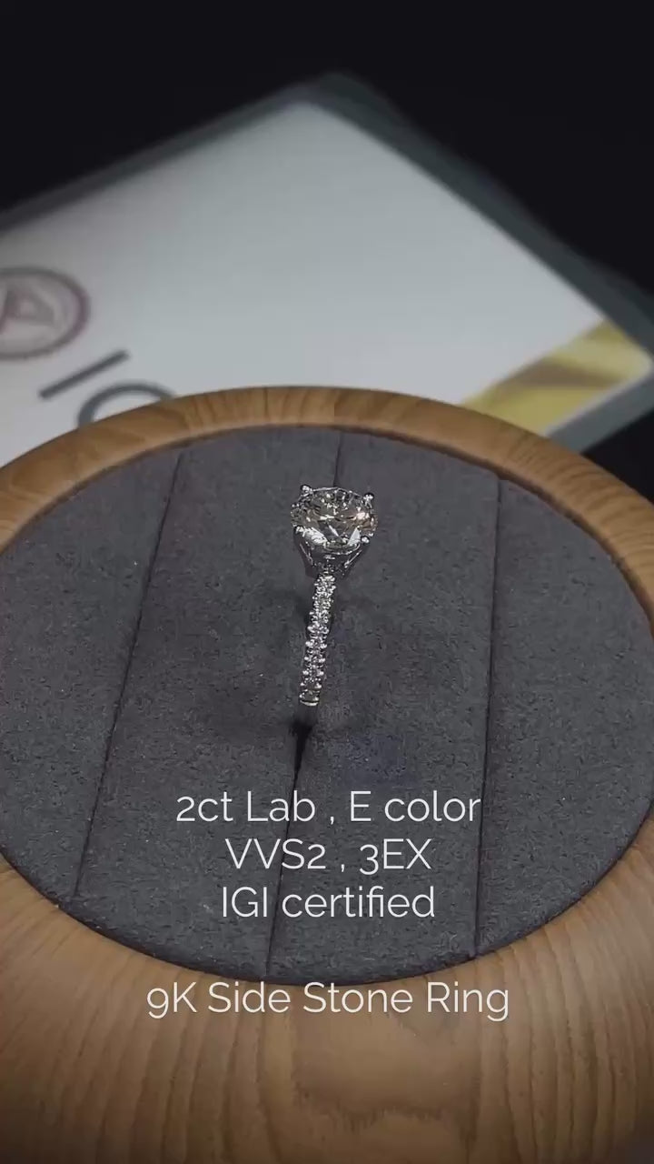 Ashe Iconic Collection ASH010 特別セール 2ct E, VVS2, 3EX, IGI認定 9K サイドストーン ラボグロウンダイヤモンドリング(メインのダイヤモンドとサイドストーンが含まれています)