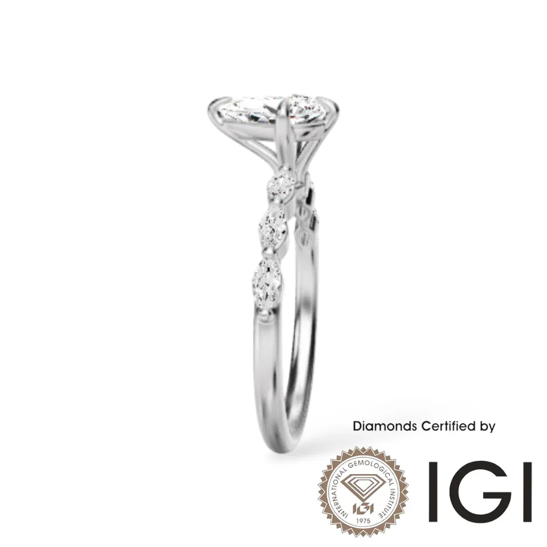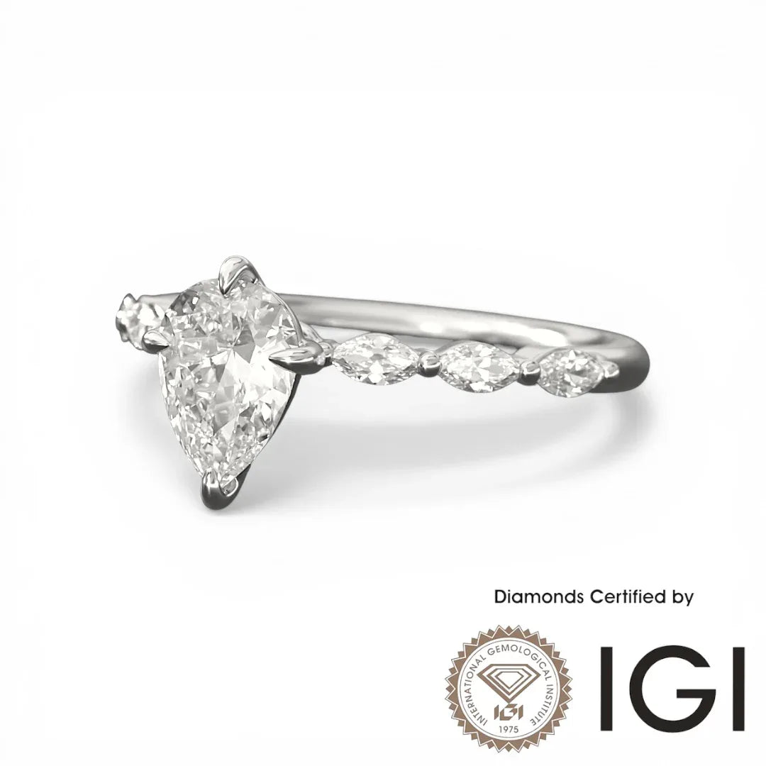 Ashe Iconic Collection ASH101 梨形實驗室培育鑽石邊石戒指 D、VVS1、VVS2、2EX IGI 認證