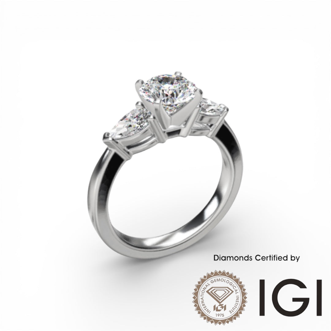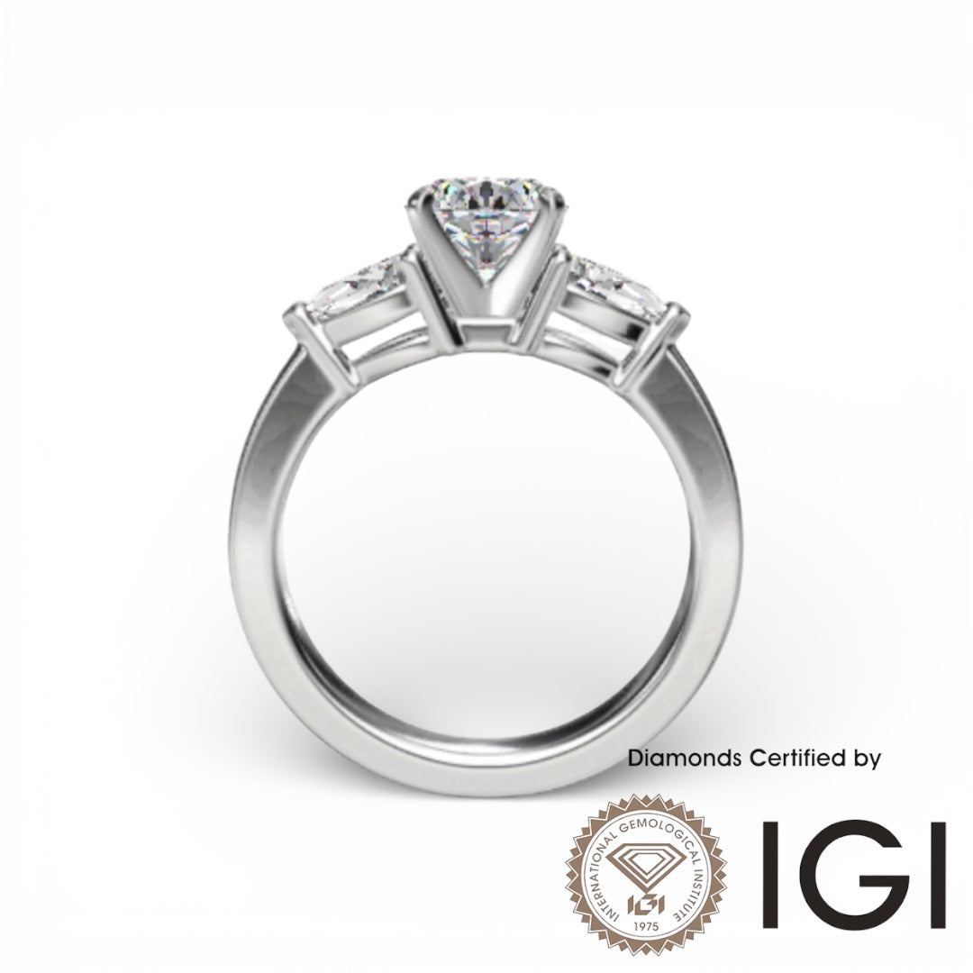 คอลเลกชัน Ashe Iconic ASH078 Sidestone Lab Grown Diamond Ring D, VVS1, VVS2, 3EX IGI Certified (เพชรหลักและเพชรข้างรวมอยู่ด้วย)